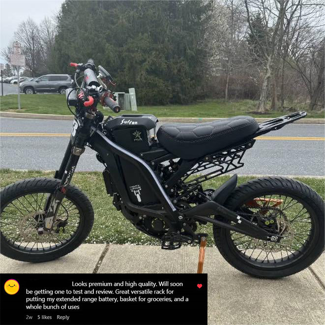 Great versatile rack for putting my extended range battery, basket for groceries, and a whole bunch of uses.